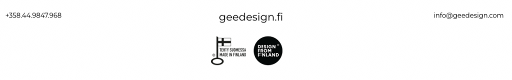 Gee Design started in 2023 with a focus on creating lasting and valued pieces. Blending artisan techniques with a contemporary vision. Our goal is to make unique, high-quality designs that combine art and function. Gee Design is a member of Suomalaisen Tyรถn Liito (Association For Finnish Work). We are proud that our furniture has been awarded the Design from Finland brand, which speaks about professional, responsible and user-oriented design. In addition, our furniture has been awarded the Avainlippu (Key Flag Symbol) which It demonstrates that the product has been manufactured or the service has been produced in Finland, creating Finnish jobs.
